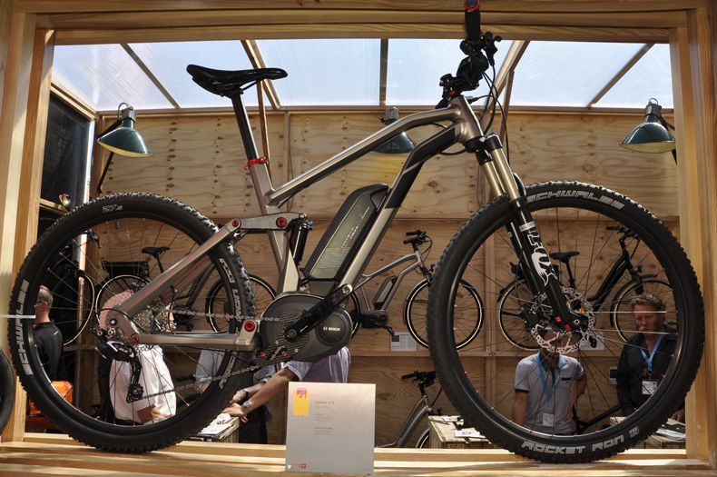 La marque française Moustache a présenté durant l’Eurobike une nouvelle collection d’E-bikes équipés du moteur Bosch, dont plusieurs VTT, ce qui est la grande tendance pour l’année 2014.